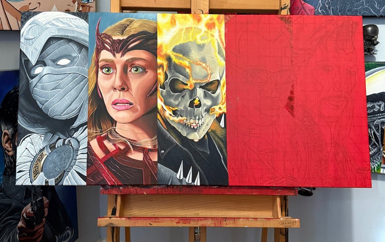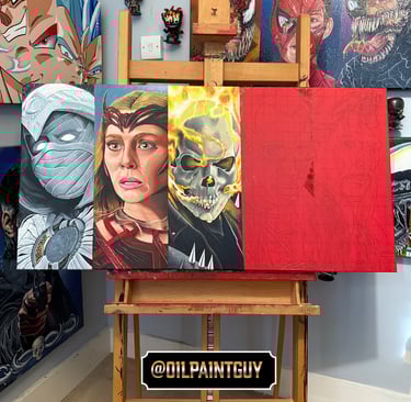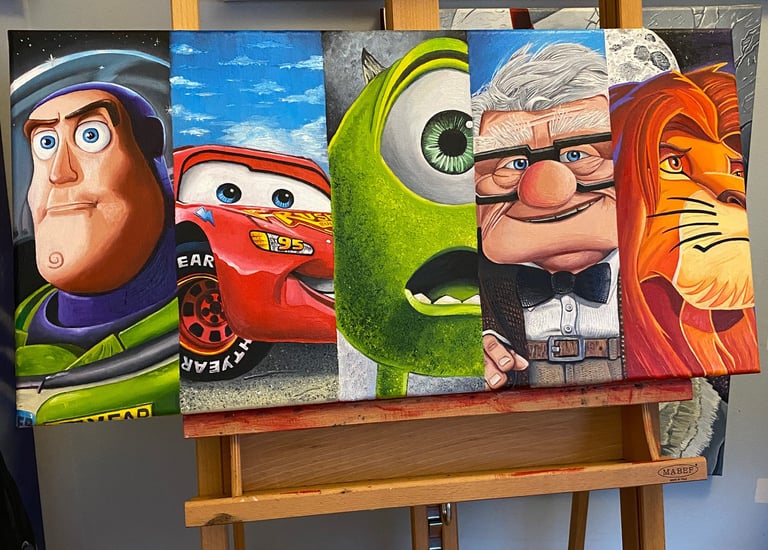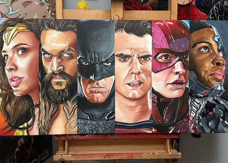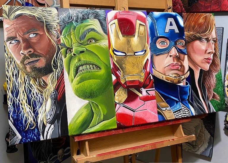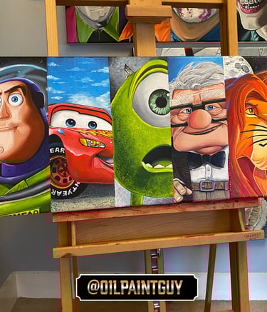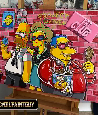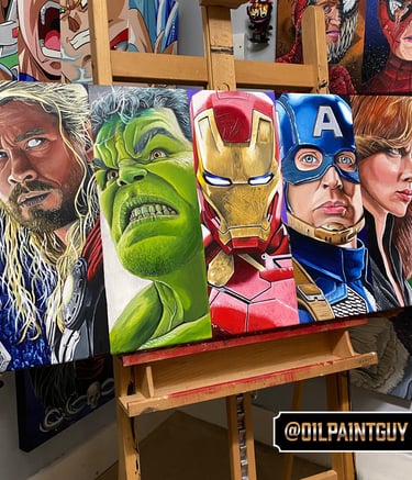 Explore my vibrant pop culture-inspired oil paintings collection.